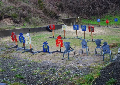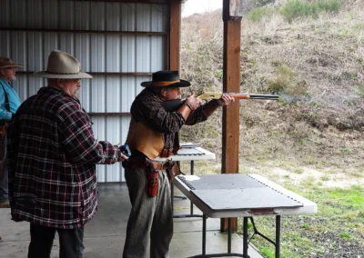 Cowboy Action Shooting requires competitors to dress in the style of clothing used in the 1800’s along with using the firearms of the mid to late 1800’s. Competitors shoot real guns with real lead bullets at steel targets under timed conditions. The parent organization, the Single Action Shooting Society (SASS) was started by “Judge Roy Bean and General Ulysses S. Grant” in the early 1980’s with a few friends and today has well over 100,000 members around the world. The sport centers around Cowboy Action shooting clubs who operate on mostly privately owned shooting ranges, but there are clubs on public ranges as well. Cowboy Action shooting has several shooting categories that cover everyone and all styles of shooting. The Siuslaw River Rangers was started by John & Kelty La Rocco AKA Johnny Jingos and Miss Annie Odem and John Soaper AKA Soapy Deal in 2002 and started with seven shooters that year.