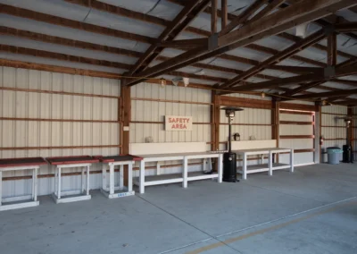 The pistol range is an outdoor range (soon to be covered). It is 30 yards deep with high berms on 3 sides. There are 8 shooting lanes. Covered and enclosed on 3 sides. A wood burning stove with wood is available on those’s coldest of days making shooting in extreme weather comfortable. The range is also equip with night time high intensity lighting.